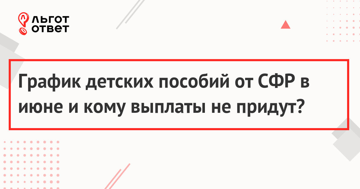 Выплаты на детей в июне 2024 года будут перечислены Социальным фондом в соответствии с установленным графиком. Вопреки ожиданиям, для досрочного перечисления детских пособий к 1 июня (День защиты детей) нет оснований. Также напоминаем, кому в мае нужно успеть продлить детские пособия от СФР. ______________________ ☎️ 8 (800) 511-38-54 – по этому телефону можно бесплатно консультироваться по вопросам оформления мер господдержки и другим юридическим тонкостям. 🔔 Чтобы всегда быть в курсе актуальных новостей в социальной сфере и знать, что вам положено, подпишитесь на наш канал 👉 «Детские пособия». График выплат на детей в июне 2024 года Ежемесячные детские пособия за май будут перечислены Соцфондом РФ в установленные единые расчетные дни (за исключением пособия по уходу за ребенком до 1.5 лет работающим гражданам, которое придет досрочно). ✅ 3 июня на счета и карты в банках будут перечислены основные выплаты: Через почтовые отделения указанные соцвыплаты поступят до 25 июня согласно у