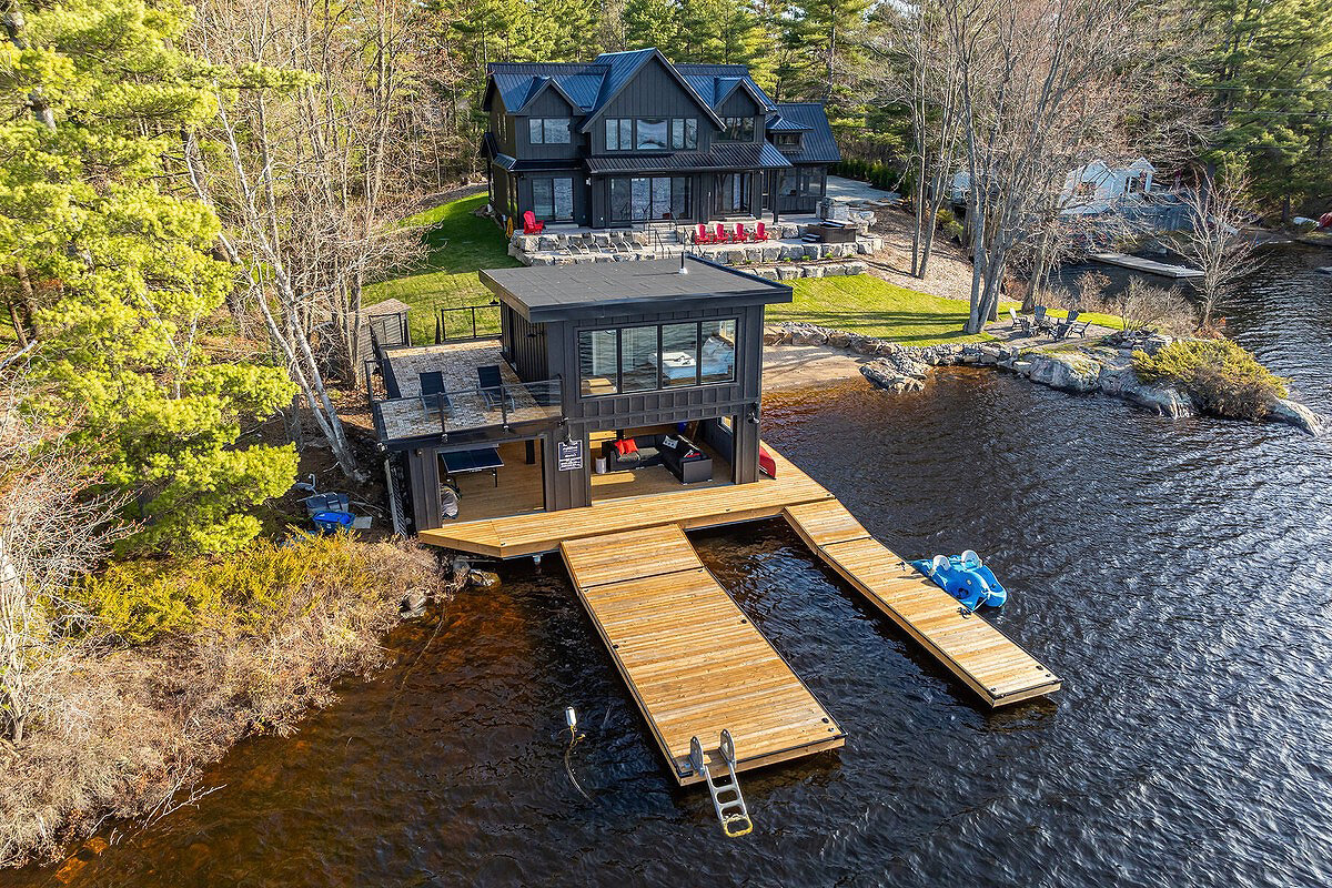 "Причал вместо парковки и водная гладь." Лаконичный интерьер североамериканского шале, на берегу озера Каш Лейк.