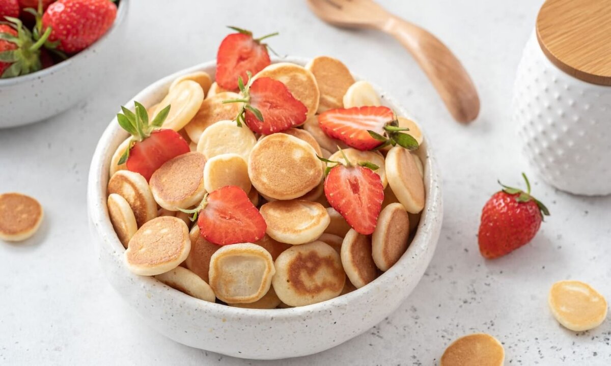 Мини-блинчики — кулинарный тренд, который быстро приготовить, и они очень вкусные. Это еще один рецепт, перед которым вам будет трудно устоять. Pancake cereal или «Блинная каша», как следует из названия, — классические американские блины, приготовленные в мини-версии. Из-за миниатюрности они напоминают хлопья и их нужно есть в миске с молоком, фруктами, шоколадной глазурью, медом, кленовым сиропом… Чтобы их приготовить, достаточно собрать классическую смесь для американских блинов — пушистого, мягкого десерта, который мгновенно поднимает настроение. Это любимое лакомство у многих благодаря их особой текстуре и вкусу. Этот простой рецепт поможет испечь их менее чем за 20 минут, а приготовление теста для блинов очень легко. Понадобится несколько простых продуктов, которые почти всегда есть под рукой, что делает процесс заманчивее. Swjournal предлагает не ждать, а попробовать приготовить мини-блинчики прямо сейчас Домашний рецепт: мини-блинчики ИНГРЕДИЕНТЫ ✓250 г муки;