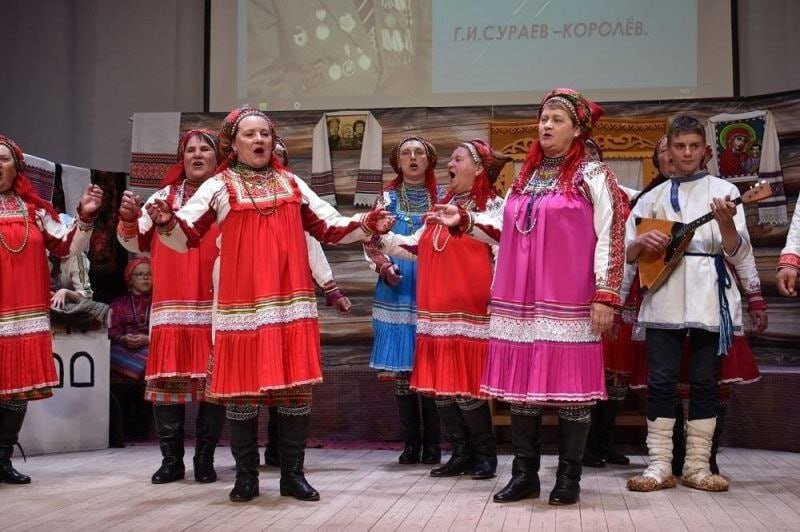 В этом году в Центре национальной культуры Старой Теризморги мелодичные песни с элементами хорового пения и многоголосия звучали под аккомпанемент народных инструментов - гармошки и балалайки, а также и без музыкального сопровождения.