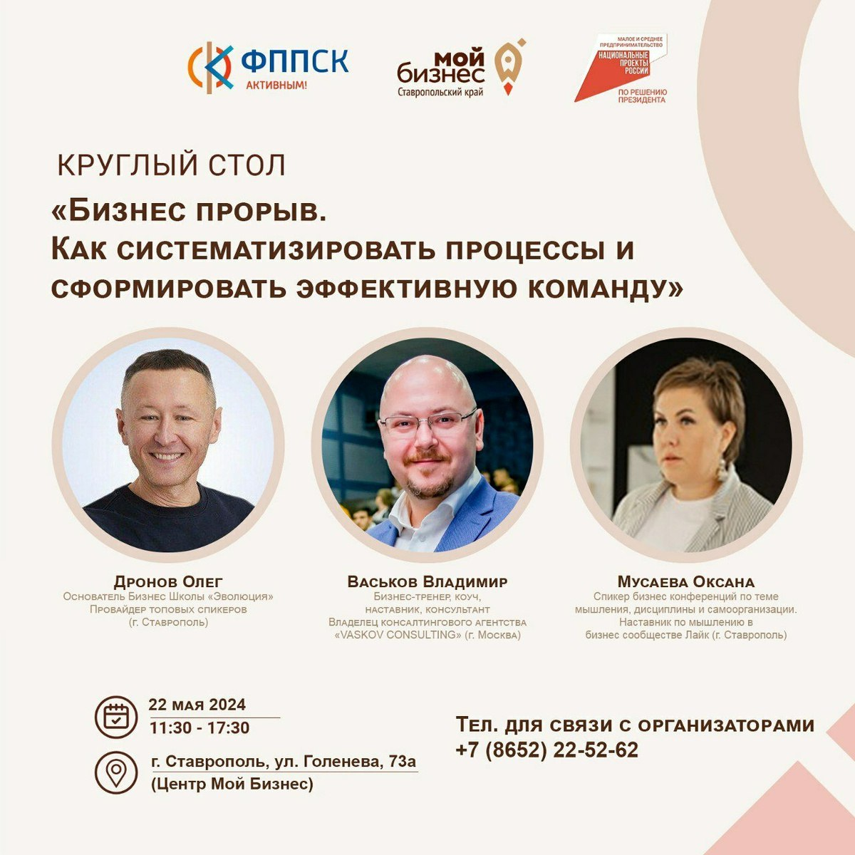 Мероприятие пройдёт при поддержке министерства экономического развития Ставропольского края в рамках национального проекта «Малое и среднее предпринимательство». Главные темы мероприятия: