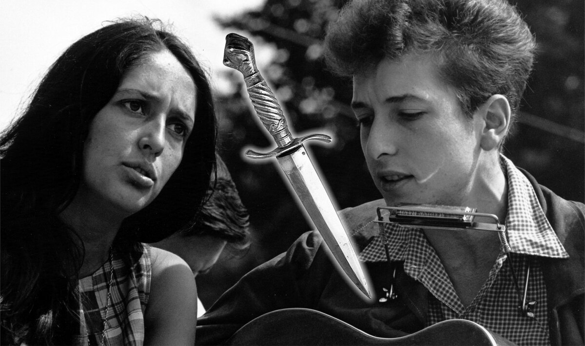 В середине 1970-х годов певица Джоан Баэз удостоилась звонка от бывшего — Боба Дилана. Не самый мирный разговор она превратила в песню «Diamonds and Rust», выражая чувство обиды на бывшего партнёра и вспоминая их головокружительный роман десятилетней давности: «Если говорить строго обо мне, мы оба могли умереть прямо тогда и там». В это «тогда и там» попадает совместное выступление Джоан и Боба в Филармоническом зале Нью-Йорка в октябре 1964 года. Траектория их творческих отношений любопытна: сначала он был гостем на её концертах, потом она — на его. «Собираюсь исполнить одну из самых ранних песен Боба Дилана», — в шутку объявляет Джоан Баэз перед тем, как спеть «Silver Dagger». Песня, конечно, не Дилана. Она родилась задолго до его рождения, возможно, в викторианской Англии. По сюжету молодая женщина отвергает ухаживания любовника, ссылаясь на спящую рядом мать и своё оружие — серебряный кинжал. Отец рассказчицы служит наглядным уроком, который учит не доверять мужчинам: «У него цепь