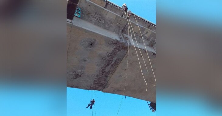 В Камышине сотни горожан стали свидетелями необычной картины. В течение нескольких часов на Бородинском мосту работали специалисты с альпинистским оборудованием. Местные паблики в социальных сетях тут же запестрили фотографиями с места событий. К обсуждению быстро подключилось большое количество горожан. Кто-то предположил, что в городе проходят некие учения, а кто-то уверял, что начался долгожданный ремонт сооружения, а альпинисты восстанавливают основание моста. Как оказалось, горожане были не так далеки от истины. Только ремонт железобетонных мостовых пролётов был произведён весьма экстравагантным способом. – Нами была получена заявка от представителей речпорта о том, что обнажившаяся арматура Бородинского моста мешает судоходству. Для разрешения ситуации администрацией были вызваны специалисты, которые с помощью альпинистского оборудования спустились в подмостовую часть и спилили железные прутья, – рассказали ИА «Высота 102» в пресс-службе мэрии. Отметим, о том, насколько безопасны