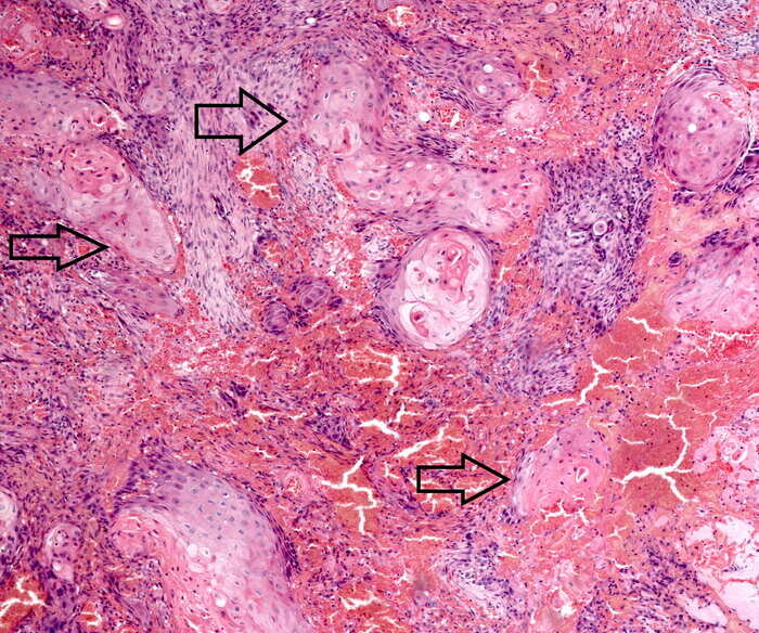 К сожалению, нередко здесь можно встретить посты, в которых пикабутяне делятся своим горем, связанным с утратой близкого человека, четверногого, погибшего от рака. Я в своей работе сталкиваюсь с ним ежедневно. Сегодня наблюдал как раз один такой, достаточно редкий случай, который хочу вам продемонстрировать. Вкратце, женщина 69-ти лет поступила в нашу клинику с желчной колики (холецистит). На операции был выявлен измененный желчный пузырь, не похожий на тот, который бывает при холецистите и представлял собой конгломерат деревянистой плотности. При ревизии брюшной полости было также выявлено утолщение сегмента восходящей ободочной кишки так же деревянистой плотности. К нам исследовании были доставлены два макропрепарата: желчный пузырь и отрезка подзвдошной и толстой кишки. При макроскопическом исследовании типичные структуры желчного пузыря не определялись, фрагменты были представлены волокнистой плотной тканью. В толстой кишке отмечался очаг утолщения стенки аналогичного вида с изъязв