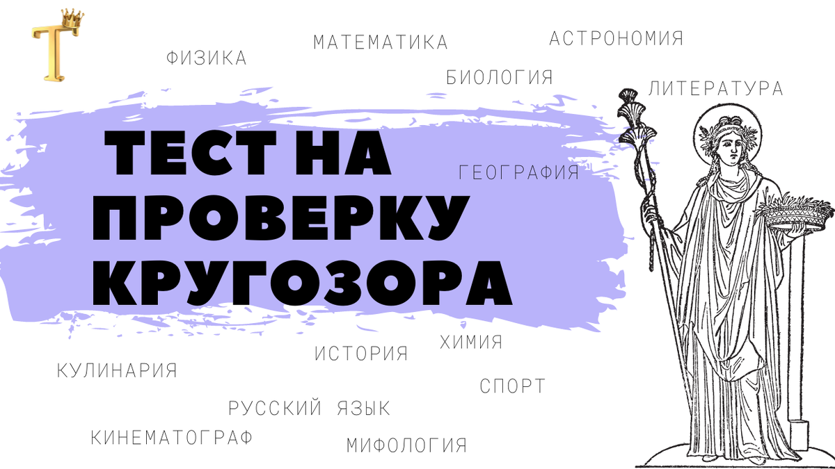 Попробуйте проверить свой кругозор! Вам потребуется немало знаний, чтобы набрать максимальный результат в сегодняшнем тесте. Великан и дракон, "Христос и грешница", Гнездовский комплекс, Церера, русский государственный деятель, Лев Толстой, Карл Брюллов и экватор - вот такие темы ожидают Вас в 1168-м тесте на проверку кругозора. Добрый день, дорогие читатели! Самым сложным вопросом в тесте №1151 (средний балл 8,57 из 12) оказался... Пенаты — это боги — хранители домашнего очага в римской мифологии. Тест №1168