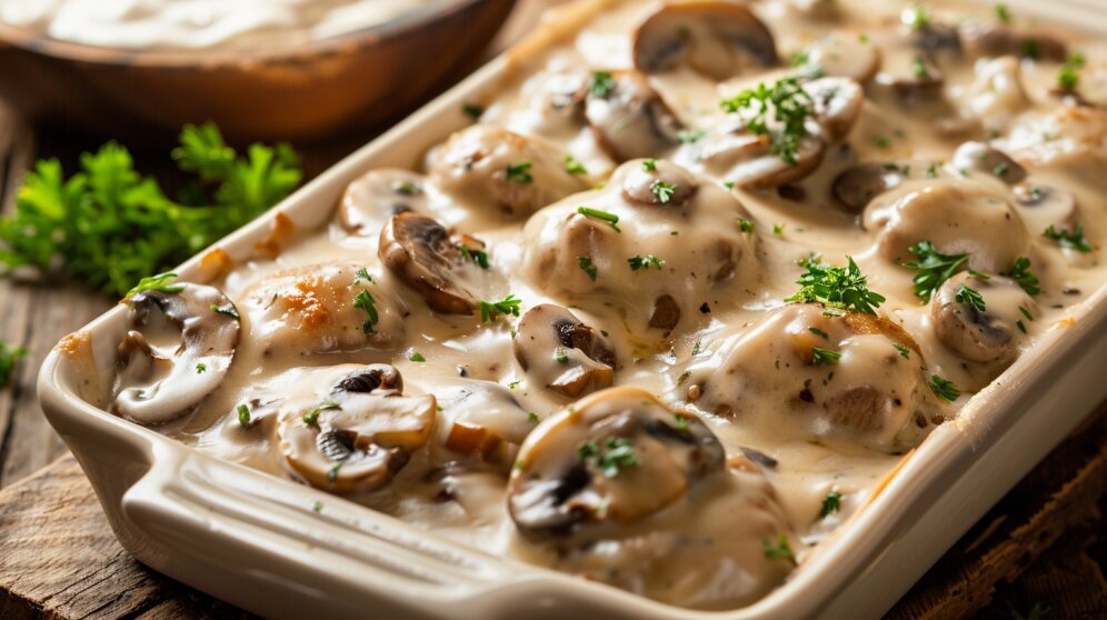 Сырно-грибной соус — это настоящая классика, которая сочетает в себе богатство вкуса сыра и аромат свежих грибов. Этот соус часто подают с пастой, мясом или как гарнир к картофельным блюдам. История его происхождения уходит корнями в европейскую кулинарию, где соусы на основе сливок и сыра всегда пользовались большой популярностью, а добавление грибов придавало блюдам особую изысканность и насыщенность. Ингредиенты Пошаговый рецепт Советы по хранению Сырно-грибной соус лучше использовать сразу после приготовления. Если нужно хранить, то можно разместить его в холодильнике в герметичной таре до 2-3 дней. Перед повторным использованием соус нужно хорошо разогреть, добавив немного молока или сливок, если соус слишком густой. Полезные свойства основного ингредиента Грибы — это прекрасный источник белка, особенно для тех, кто не употребляет мясо. Они также содержат витамины группы B, которые способствуют улучшению работы нервной системы, и являются источником минералов, таких как селен, кот