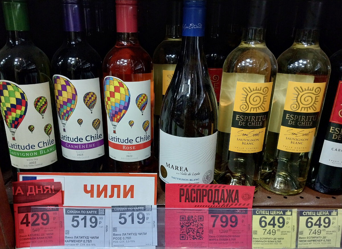В разных магазинах этой сети остались разные «сладкие остатки» импортных вин, поэтому выставлены они везде по-разному:
