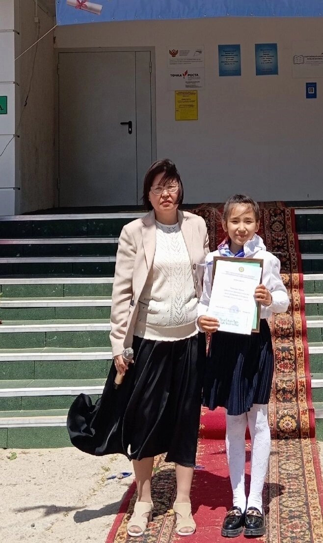 🎊Сегодня, 24 мая, на заключительной общешкольной линейке были оглашены результаты школьного конкурса на соискание премии имени Широковой Анны Алексеевны, Заслуженного учителя Республики Калмыкия. Премия присуждается лучшему ученику, успешно освоившему образовательные программы начального общего образования и показавшему высокие достижения в учебно-воспитательной, внеурочной и внешкольной деятельности. 🏅По решению школьной комиссии победителем стала Чимидова Айтана, ученица 4 класса. Айтана - отличница учебы, активистка, танцовщица и юная артистка школьного театра "Аршан булг". Девочка награждена дипломом победителя и денежной премией в размере 5000 рублей. Денежная премия учреждена детьми и внуками Анны Алексеевны Широковой. Поздравляем Айтану с победой в конкурсе, желаем стремиться к новым высотам, открывать мир и открывать в себе новые грани! 🙏Благодарим семью Широковых за вклад в поддержку одаренных учеников школы! И выражаем восхищение вашей сыновней любовью к матери, уваж
