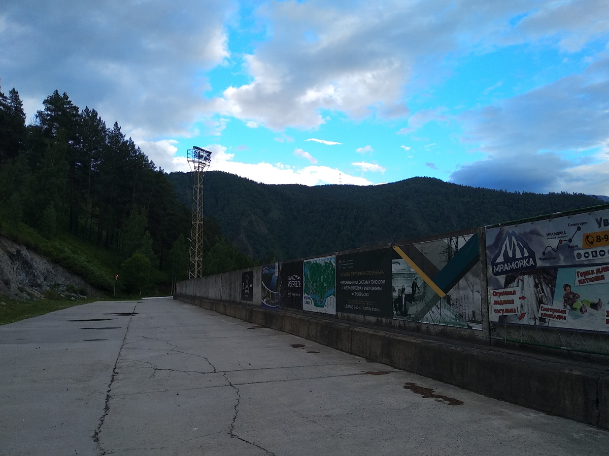 Напоминалка - едем мы по дороге от Саяногорска до Саяно-Шушенской ГЭС, по которой соберем восхитительные места для отдыха, от которых в восторге останутся даже дети, а также место с техногенной красотой - Кровавое озеро и Уйская чудо-плотина. Все это расположено по одной дороге с небольшим промежутком между собой. И мимо этих мест вы точно не должны проехать! Выезжаем из Мраморки и едем в пгт Черемушки, до места назначения ехать 13 мин (11 км). Пункт назначения горнолыжный комплекс "Черемуховый лог". Да-да, у них есть свой горнолыжный комплекс. "Но, что там делать летом?" - спросите вы! Ну, там есть канатная дорога и я очень хотела посмотреть, что там летом. Заранее ничего не узнавала и не читала, поэтому, посмотрим. Паркуемся возле стадиона Видим подъемник, но он не движется, идем в кассу и... все удачно - покупаем билеты, цена за подъем - 150 р. Время работы с четверга по воскресенье с 13:00 до 20:00. Мы единственные посетители, запускают подъемник и я безумно рада! Этот горнолыжный