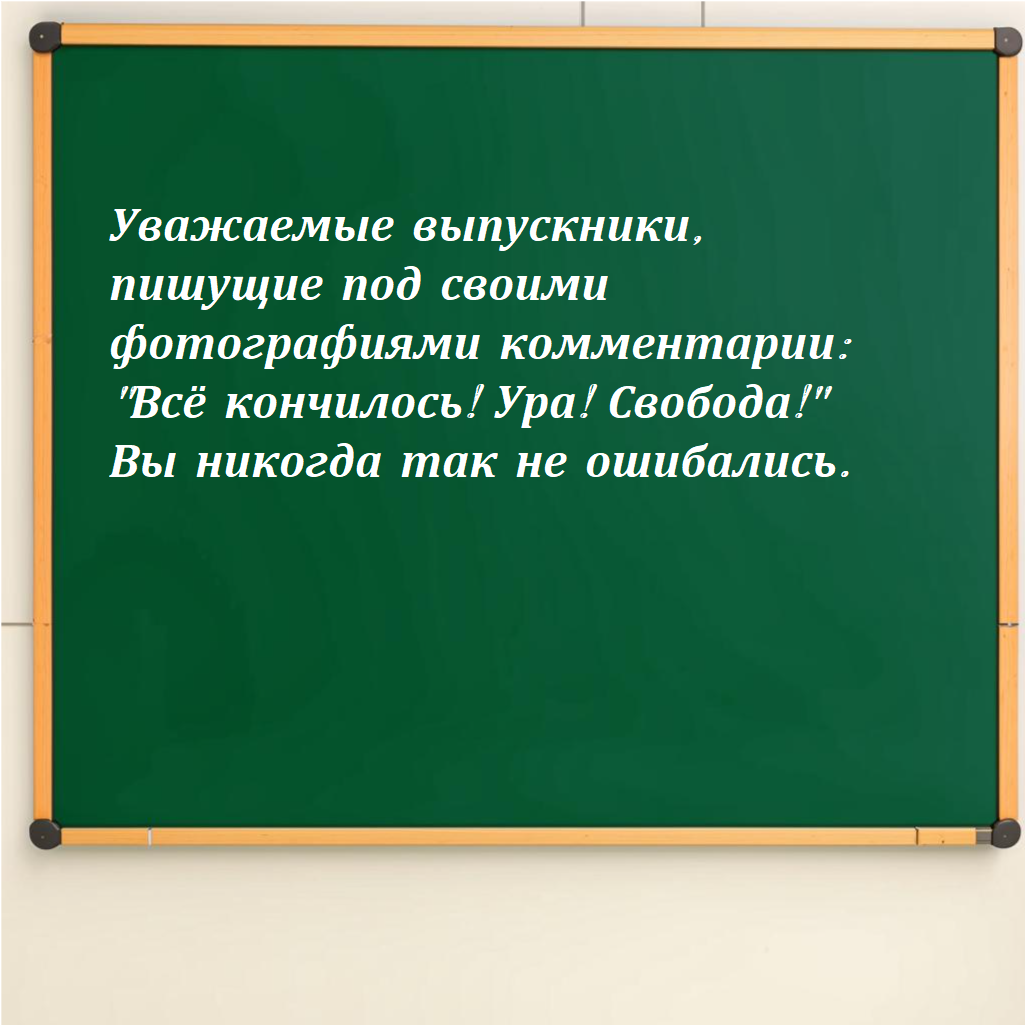 С Каникулами! С отличными аттестатами и крепкими нервами! Во всех непонятных ситуациях улыбаемся. И помним, что в жизни все мы вечные выпускники, даже если давно получили аттестат. Мой получен в 1982). А Ваш?