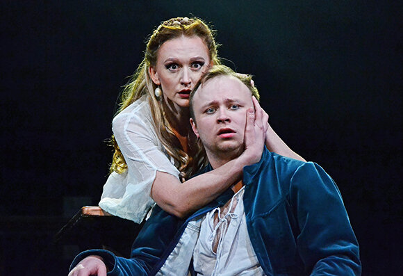 Действие местами напоминало актерскую читку. Так, Андрей Кулаев, сыгравший роль Гамлета, сидя за микрофонами, вначале озвучивал реплики сразу четырех стражников, столкнувшихся с призраком – тенью отца главного героя. В первые минуты показалось, что Кулаев – не совсем подходящий для главного героя типаж. Воображение подсовывало худого и бледного юношу с горящим взором. Потом стало ясно: его Гамлет нарочито близок к внутреннему содержанию образа, созданного когда-то Владимиром Высоцким. Давая интервью после спектакля, известный актер подчеркивал, что сыграл не столько принца датского, сколько человека, который мог бы жить в любое время. В пензенской версии это подчеркивает и костюм Гамлета, который не смотрелся бы чуждо ни во времена Шекспира, ни в совреме