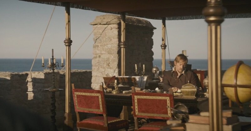 Ясно же, что там не нужно ни то, ни другое, так зачем они? Или у кардинала в глобусе припрятан глинтвейн, который он будет подогревать на свечках? Так они потухнут от ветра, это ж крепость у моря, там даже во время штиля ветерок гуляет.