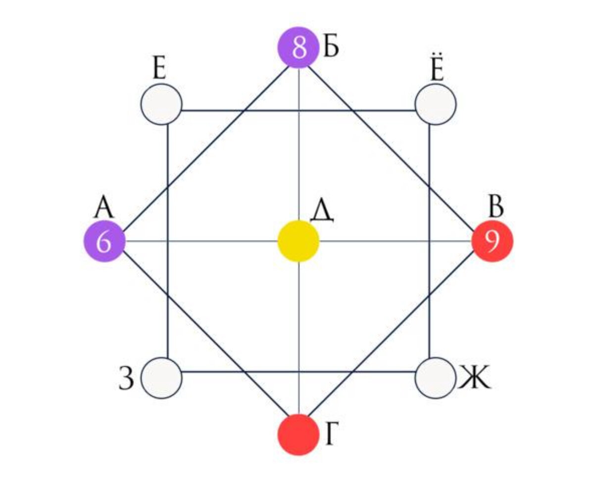 А точки В и Г отвечают за исключительный минус энергий. Поэтому, когда просчитываем данный вид Матрицы, смотрим на эти 4 точки чтобы понять в чём плюс, а где минус.