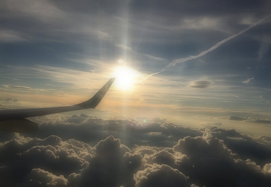 Когда наш самолёт набрав скорость оторвался от земли, я вздохнув тихо произнесла