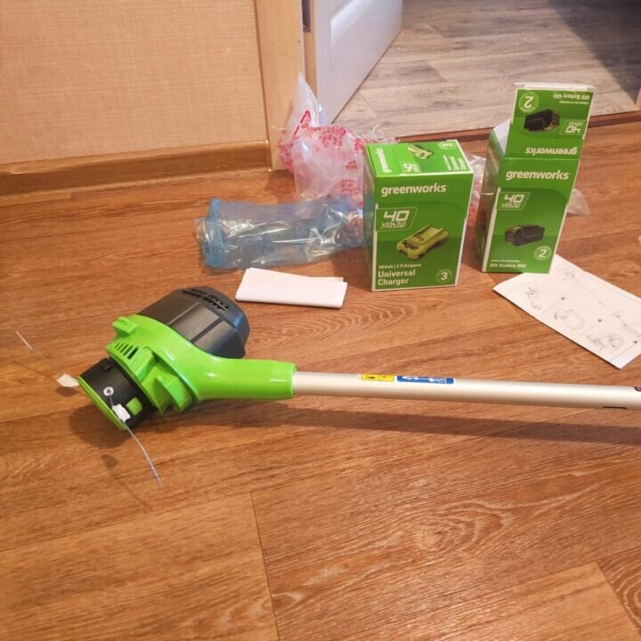 Триммер работает на аккумуляторах Greenworks G-MAX 40V, доступные в вариантах емкости 2 или 4 Ампер-часов, обеспечивая до 48 минут непрерывной работы без необходимости перезарядки. Это идеальный вариант для тех, кто ценит свое время и комфорт при уходе за приусадебным участком.