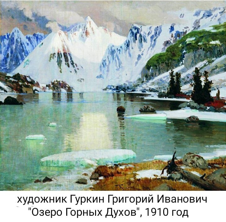 12 января 1870 года родился Григорий Иванович Гуркин – русский художник, график, живописец и пейзажист, ученик Ивана Ивановича Шишкина. Его называли "Певец Алтая". В 1940-х годах горный инженер, учёный палеонтолог и писатель Иван Антонович Ефремов, вдохновленный картинами Гуркина, пишет одноименный с названием картины художника рассказ "Озеро Горных Духов". По сюжету рассказа геолог встречается с художником картины "Озеро Горных Духов" (фамилия художника в рассказе изменена - Чо́росов) и позднее в районе этого озера открывает месторождение ртути. В рассказе описаны, так же, и другие картины Григория Гуркина: "Хан - Алтай" и "Корона Катуни". Сюжет рассказа приводился литературными критиками как пример научно-прогностической функции советской фантастической литературы, подчёркивалось, что в районе озера, описанного в рассказе, действительно были обнаружены ртутные месторождения. Рассказ "Озеро Горных Духов" впервые опубликовали в 1944-м году в журнале "Техника - Молодёжи" и в сборник