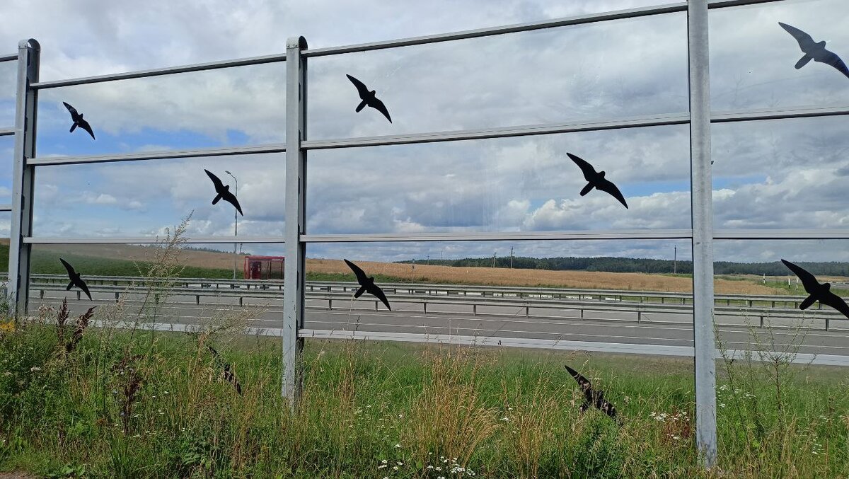 Кто ездит на автомобиле, наверное не раз замечал щиты-шумогасители в местах, где оживлённая трасса проходит вблизи жилых домов. Иногда они деревянные, но иногда более лёгкие, долговечные и дешёвые - пластиковые. Однако прозрачный пластик, как и большие оконные стёкла высотных зданий несут серьёзную опасность для птиц. Во время миграций большие стаи перелётных воробъиных погибали сталкиваясь со стёклами. Отражение деревьев, оптическая иллюзия пустых пространств играют с птицами в злую шутку. И тогда человечество изобрело простой, но действенный выход. На прозрачных поверхностях стали рисовать или клеить изображения силуэтов хищных птиц. Двадцатисантиметровые соколы или сорокасантиметровые коршуны пугают маленьких Зябликов, Мухоловок, Чижей и множество других малышей, заставляя их облетать опасный участок. У нас не утихают споры между зоозащитными организациями и изобретателями о эффективности этого метода. Первые утверждают, что время от времени птицы погибают, сталкиваясь с прозр