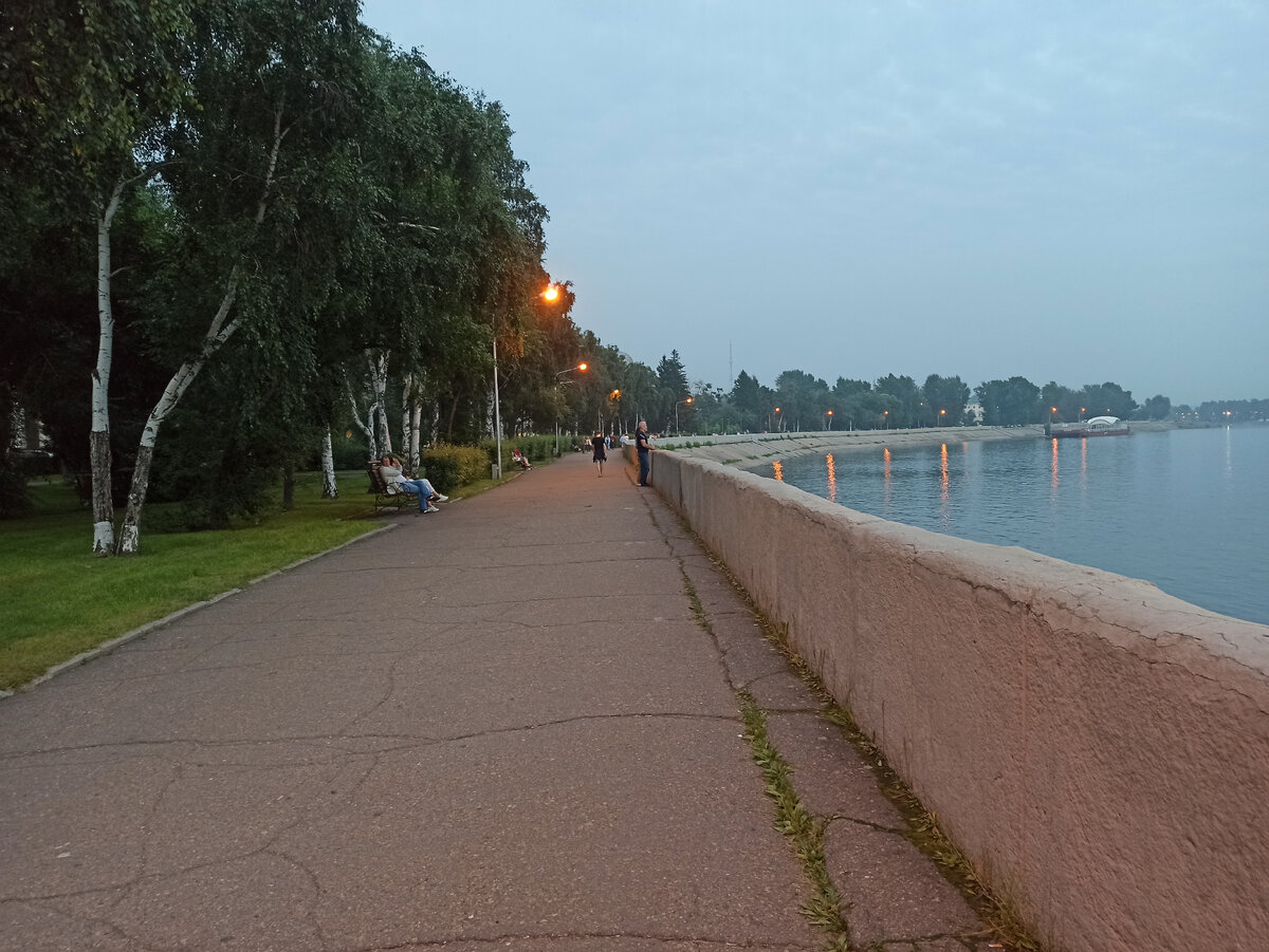 Вечером после насыщенного экскурсионного дня можно было бы отдохнуть. Но когда я еще приеду в Иркутск? И я иду на прогулку вдоль набережной Ангары. Здесь оборудована прогулочная зона. Гуляющих много: подростки, молодежь, пары с детьми, пенсионеры. Все отмечают, что уровень Ангары значительно поднялся (2021 год). Несколько достопримечательностей встречается на моем пути: памятник первому космонавту Юрию Гагарину (горожане называют его "таблетка"), величественный монумент императору Александру III с надписью "Благодарная Сибирь", городские скульптуры, зоны для пребывания с детьми. По мосту через Ангару перехожу на остров "Юность". На острове находится небольшой лесной массив. Это популярное место отдыха горожан. Остров разделен на 3 зоны: культурно-развлекательную, спортивно-оздоровительную и торговую. Вглубь я не захожу. Надо возвращаться в гостиницу. Завтра будет тоже интересный день: пройдем 120 км на катере по Байкалу. Я продолжила самостоятельный осмотр города уже в конце нашег