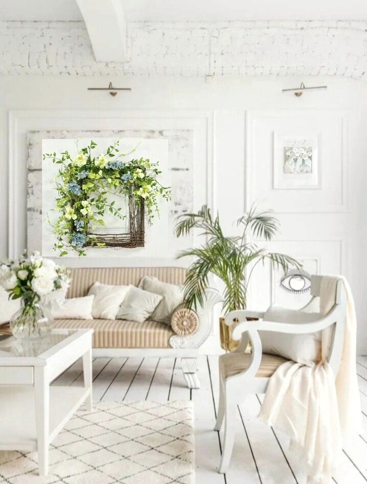 Но меня больше всего заинтересовали панно из искусственных цветов: если сюжет будет не перегружен, а цветы – нежных оттенков, то панно будет освежать интерьер и создавать уютную атмосферу, а не печальные ассоциации.