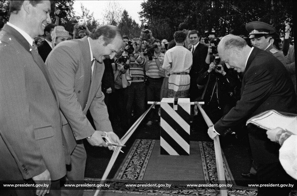 А уже 26 мая президент Беларуси Александр Лукашенко и премьер-министр РФ Виктор Черномырдин участвовали в торжественном снятии границ между двумя странами – сначала выкопали единственный пограничный столб, а затем убрали шлагбаум и посадили березу. Церемония прошла на погранпереходе Редьки – Красное.