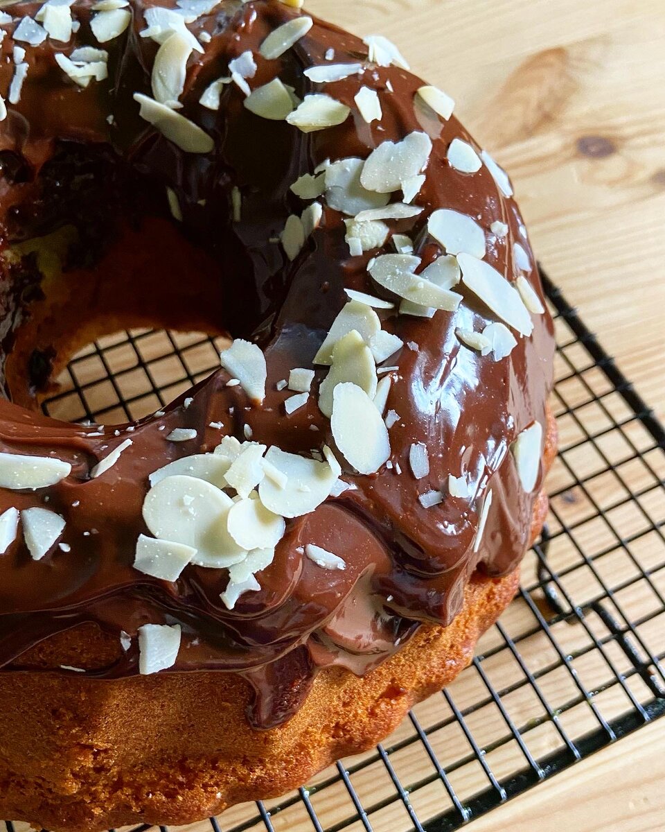 И снова рецепт!‼️😊 Немудрёные ингредиенты и потрясающий результат Ароматный апельсиновый🍊🍊🍊кекс с шоколадным центром 🍫🍫🍫 150 г белый сахар 3 яйца категории 1с 200 г густого йогурта без добавок (можно сметану 15-20% жирности) 100 г растительное (у меня подсолнечное) масло 230 г пшеничной муки 2 ч.л. без горки, разрыхлитель цедра от 1 среднего апельсина 1 ст.л. какао (у меня алкализованное) Для шоколадного покрытия: 60 г темный шоколад (у меня Sicao, можно взять Бабаевский Люкс) 60 г сливки 33% 6 г сливочное масло 1. Взбить яйца с сахаром до тягучей ленты 2. Добавить йогурт и масло, не осадив яйца 3. Муку с разрыхлителем просеять 4. Добавить в смесь яичную и вымешать до однородности, не долго 5. Отложить 1/3 части и в неё просеять какао и перемешать, положить в кондитерский мешок 6. В оставшуюся 2/3 массы положить цедру, перемешать 7. Тесто с цедрой 🍊выложить в форму для запекания, у меня с центром внутри и в диаметре 22 см по верхней части 8. Кондитерский мешок