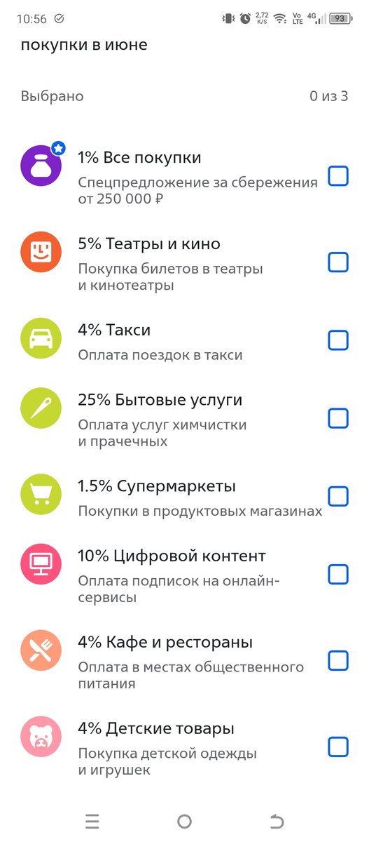 ВТБ не отстает и предлагает выбрать категории на июнь