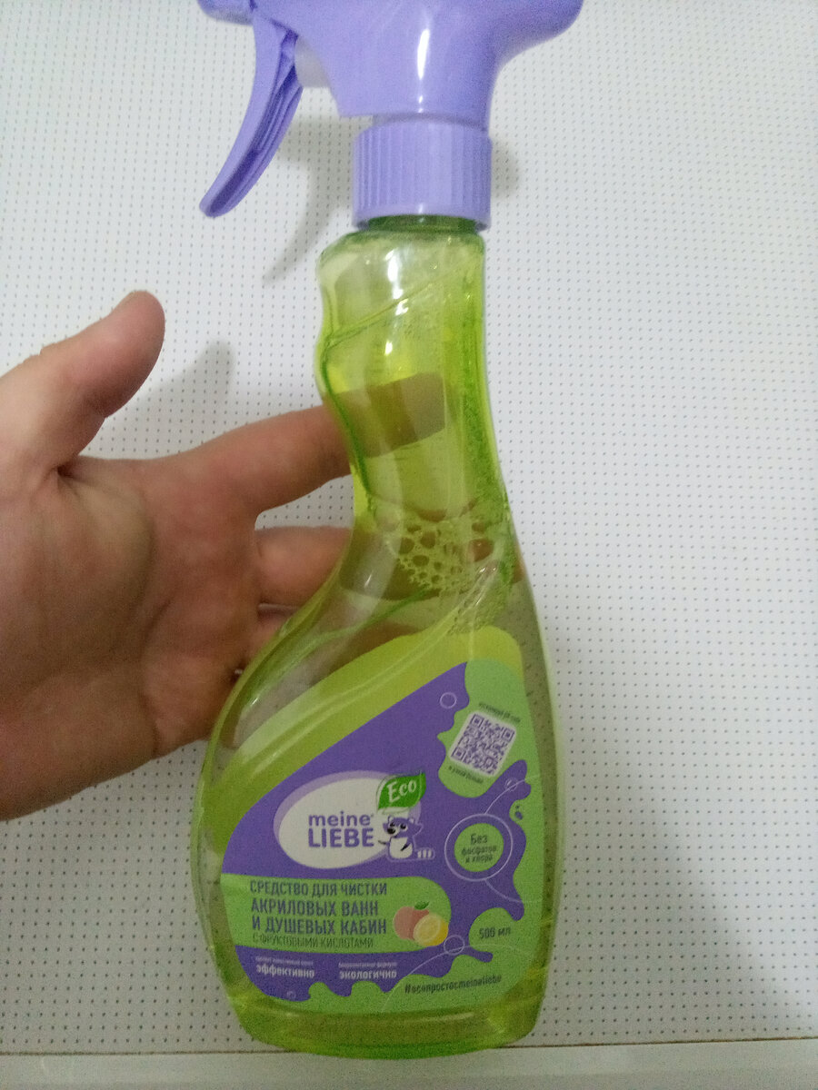 Чистящее средство для акриловых ванн и душевых кабин Meine Liebe с антибактериальным эффектом объемом 500 мл отличное средство . Помогает очистить поверхность без труда . Покупала средство для очистки акриловой ванны, так как тяжело подобрать щадящее средство, чтобы не испортилась эмаль. Но все получилось безупречно , до и после видно на фотографии , эффект хороший Дизайн самого средства тоже очень симпатичный . Особенно понравилось , что сам распылитель отлично разбрызгивает средство и идеально смывается водой без разводов и пятен . Средство рекомендую к приобретению по следующим причинам :