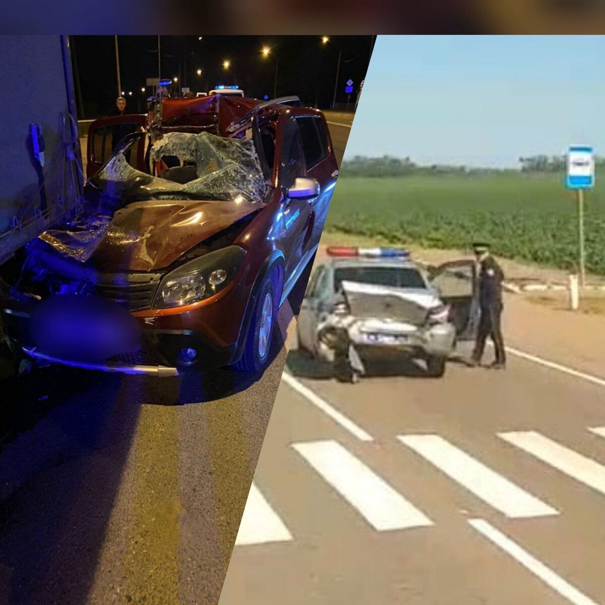 На трассе рядом с Кореновском легковушка протаранила патрульное авто, а в Абинском районе легковой автомобиль врезался в припаркованный большегруз, есть жертвы. Об этом стало известно 25 и 26 мая из сообщений ГУ МВД РОССИИ по Краснодарскому краю и telegram-канала «ЧП Краснодар ™». СМОТРЕТЬ ВИДЕО Вчера днём на трассе рядом с Кореновском легковушка влетела в автомобиль правоохранителей. Патрульный автомобиль остановился на трассе перед зеброй, чтобы пропустить пешехода. Водитель ехавшей позади правоохранителей видимо не сориентировался и хорошенько примял казённое авто. Сообщается, что обошлось без пострадавших. Жёсткая авария произошла в Абинском районе. Как сообщает пресс-служба ГУ МВД РОССИИ по Краснодарскому краю, в посёлке Ахтырский Абинского района водитель автомобиля Reno Sandero не справился с управлением, выехал с проезжей части, где допустил столкновение с припаркованным на обочине большегрузом DAF. В результате дорожно-транспортного происшествия один из пассажиров погиб, друго