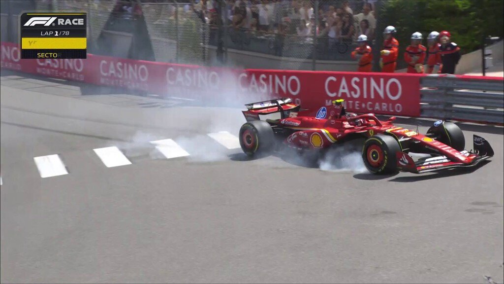 Гран-при Монако остановлен красными флагами на первом круге после двух аварий – с участием Переса и Сайнса