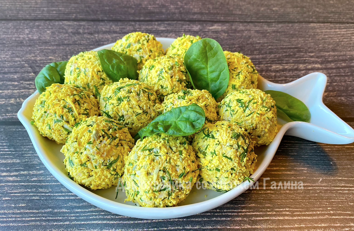 - Обваляла рыбные шарики в панировке из желтков и укропа.
