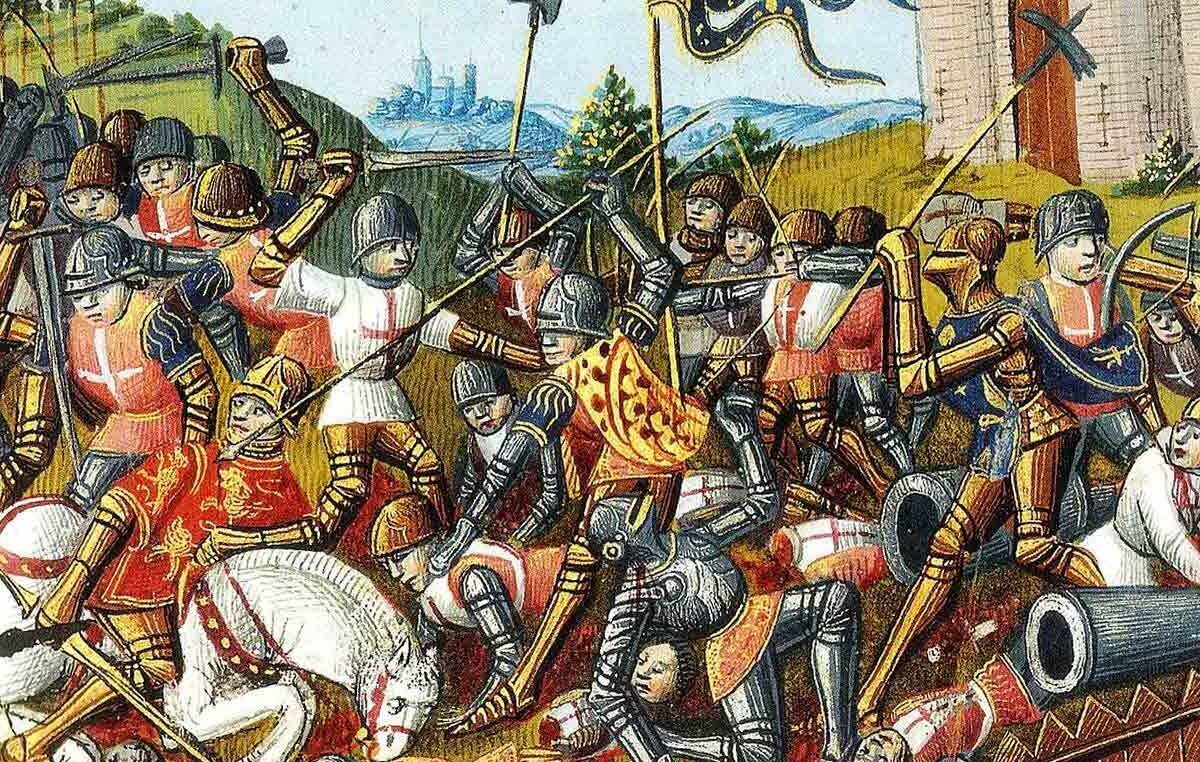 Ход сражения: 26 августа 1346 года английская армия, состоявшая из лучников, пехоты и рыцарей, столкнулась с французскими войсками у деревни Креси в Северной Франции. Англичане заняли выгодную позицию на возвышенности и использовали длинные луки, чтобы нанести разрушительный урон наступающим французам. Французская армия, несмотря на численное превосходство, потерпела сокрушительное поражение.