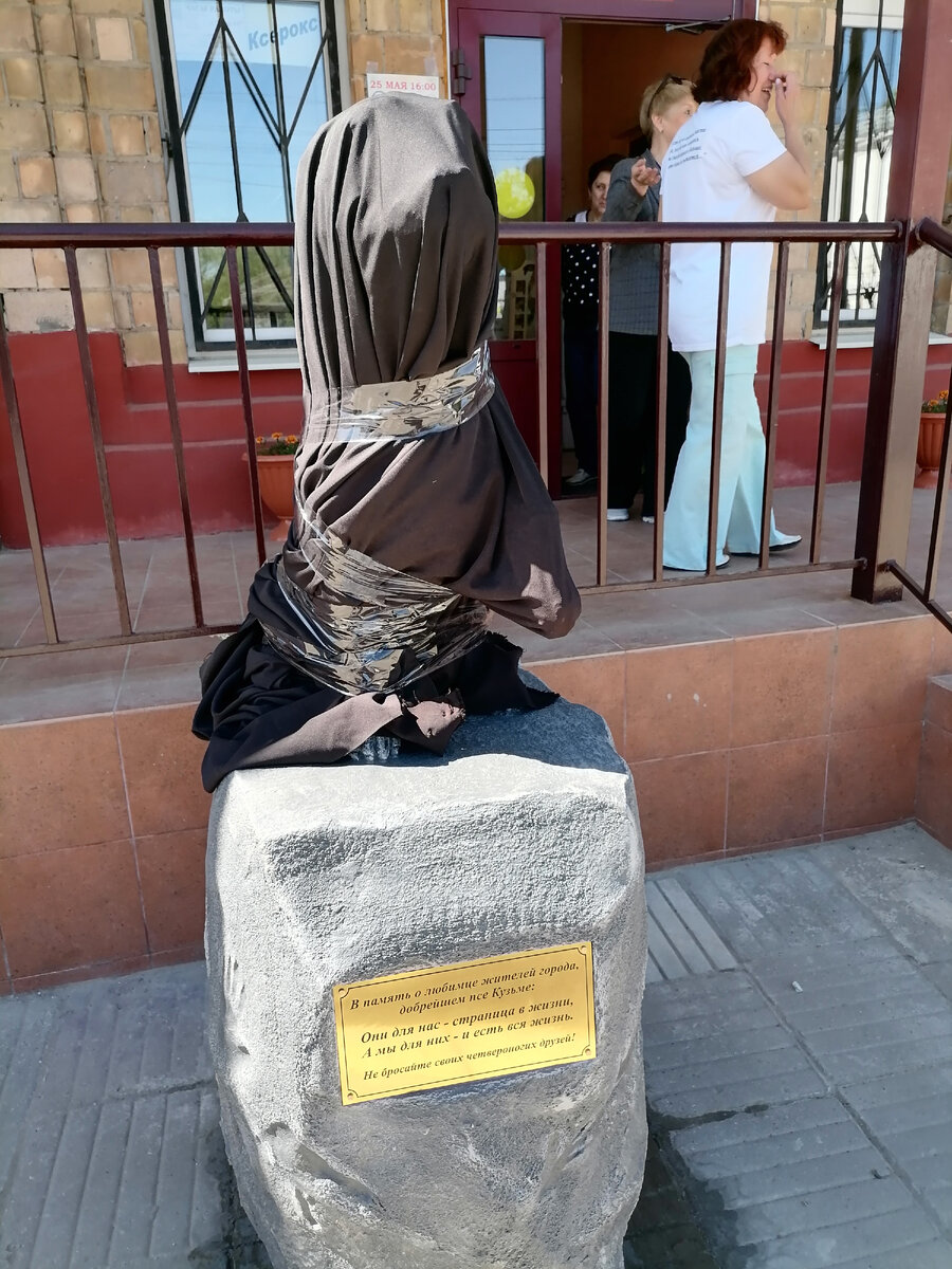 Мы чисто случайно попали на это открытие, когда были в городе по другим делам. Пёс Кузя был местным любимцем, жил рядом с местом, где поставили памятник. Умер он три года назад, но местные жители оказались так неравнодушны к его судьбе, что все вместе собрали средства, чтобы увековечить память о нём. Памятник очень правдоподобен. У Кузи была сломана лапа, которую он постоянно держал навесу. Отпечатки ладоней на камне символизируют руки волонтёров, спасающих миллионы животных по всему миру. Само открытие было многолюдным и праздничным. Состоялось оно возле главной городской библиотеки, инициаторами выступили местные зоозащитники, представители городского приюта для бездомных животных и общественные деятели. Во время открытия проходили мастер-классы... ...были видеопоказы подопечных приюта приюта... ...фотосушка "Они ищут дом" с фотографиями подопечных... ...благотворительная торговля всякими вкусняхами... ...и игрушками ручной работы. На втором этаже библиотеки работала фотозона. Б