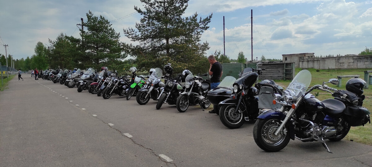 Основной контингент суровые "дядьки" на больших мотоциклах, которых я побаиваюсь. Девушек за рулем мотоциклов - двое. Я на "миднайте" и девушка на небольшом "гусе".