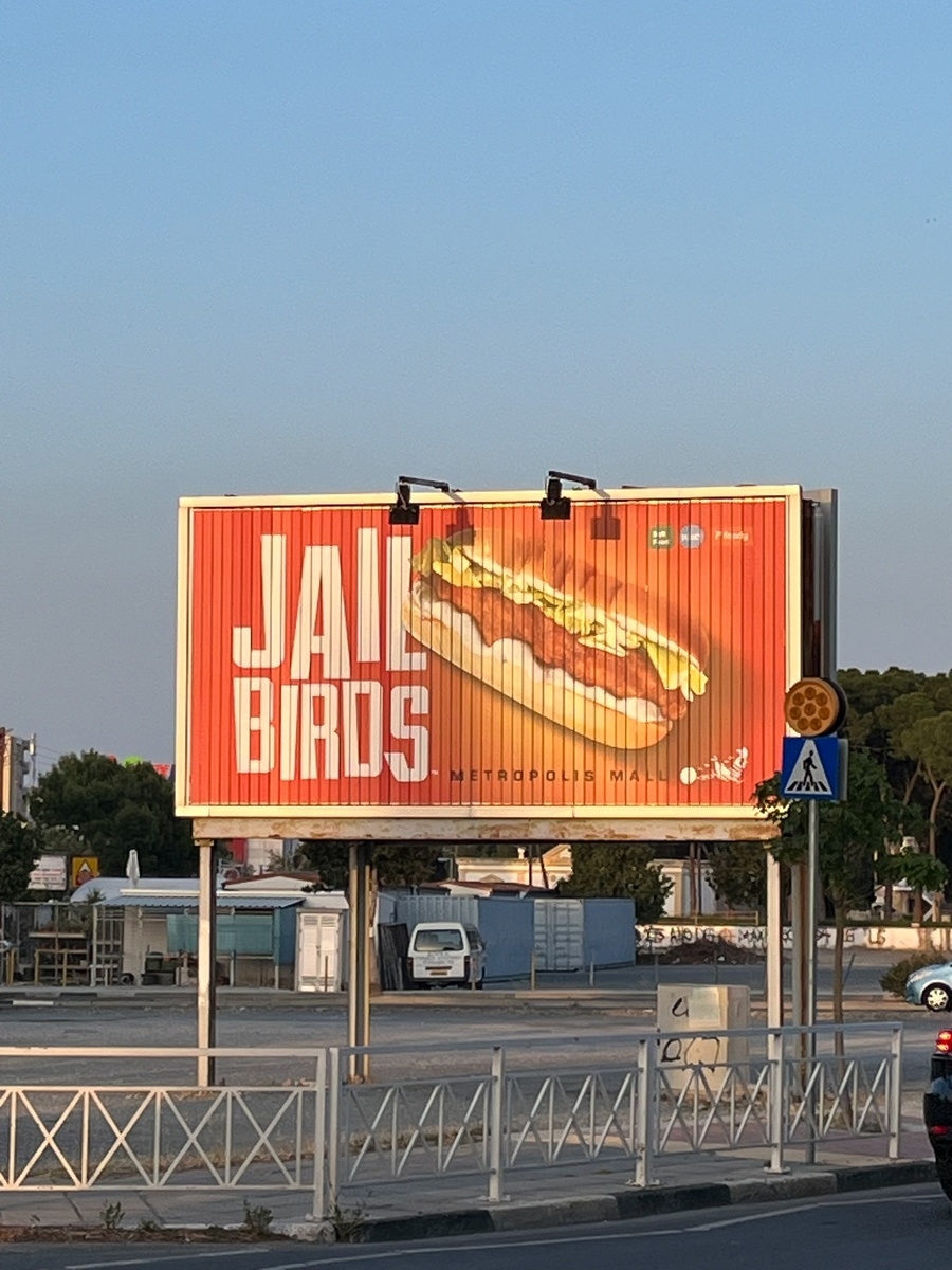 Организм взрослого человека примерно на 65% состоит из воды, в моем организме оставшиеся 35% делят курочка из KFC и Додо пицца. Гуляя по торговому центру Ларнаки напротив знакомого красно-белого логотипа я заметил яркую вывеску, которая сразу завоевала моё внимание. Заведение называлось Jail Birds и судя по логотипу - это было что-то интересное, свежее, что-то дерзкое по типу смеси KFC и Burger King. Сразу мне попробовать это чудо не удалось, но через пару дней жена мне принесла на пробу Dirty bomb - Philly cheesesteak аж за 8,5 евро, что даже для Европы как-то дороговато за булку в фастфуде. И, честно говоря, это было разочарование на всех этапах. Открываешь пакетик и аппетит у тебя явно не просыпается, всё как-то вывалилось, перемешалось и выглядит как будто моей кошке стало плохо. Мясо невкусное, булка невкусная, соус подобран вообще не в тему, так ещё и есть это тупо неудобно, постоянно что-то вываливалось, ну собственно название говорило само за себя: Dirty bomb. Может быть мне пр