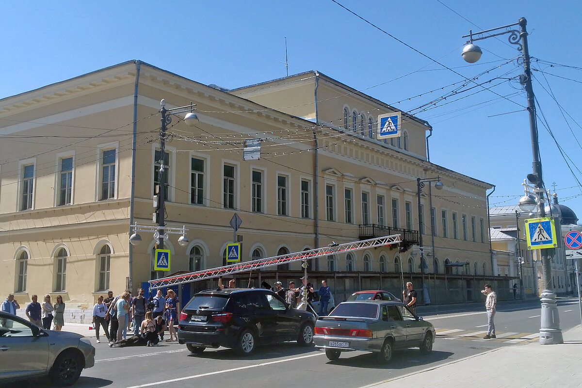 Мы с мелкой в выходные пошли погулять в центр Твери, к фонтанам и в городской сад. Мороженки поесть, в «Чикене» посидеть, на всяких «активностях» (дурацкое слово!) поиграть. Доехали до фонтана, что у цирка (его закрыли на долгосрочный капремонт, но это к делу не относится). Дите набегалось вокруг фонтана, от которого брызги по ветру и решили мы в горсад (там тоже свой фонтан). Идем по театральной площади: за спиной бюст Александру Сергеичу, слева культовое заведение «Фабрика блюза», справа – филармония и драмтеатр. А впереди по курсу, видим - что-то происходит. Народ толпится, какая-то хрень с камерой нависает, на дороге «труп» лежит, тщательно загримированный и рядом – тележка с еще одной камерой. В общем, догадались - кино снимают. У драмтеатра тоже киношники разместились, какие то машины, люди суетятся… Ну мы решили посмотреть. Дочка вытащила свой фотик и даже чего-то там поснимала. Ну я я по-простому… на телефон. Сняли они буквально несколько секунд, массовку, походу, набрали прям
