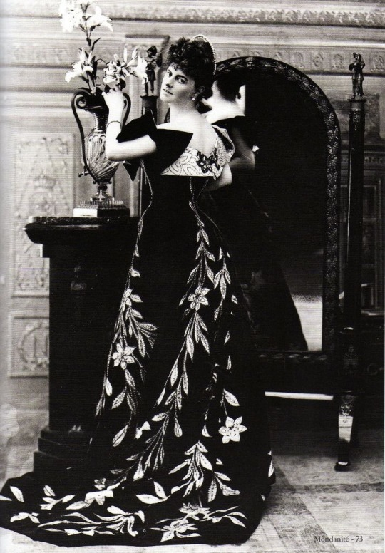 Сегодня мы расскажем вам о невероятном платье графини Греффюле, которое произвело настоящий фурор в обществе. Оно настолько удивило современников что его даже упомянули в стихотворении. А еще оно содержало тайное послание. Элизабет де Караман-Шиме, графиня Греффюле (Греффюль) сделала это платье по-настоящему бессмертным, согласившись на модную "фотосессию" фотографу Надару в 1896 году. В настоящее время платье и оригиналы фотографий являются музейной ценностью. Платье, надетое графиней на бал, произвело фурор благодаря своему необычному крою - на уровне талии не было швов. Вышивка золотыми лилиями лишь больше подчеркивала стройную талию, которой так гордилась графиня, она же визуально делала женщину выше, придавая фигуре статности. Похожий прием использовался в русском придворном платье, однако еще ни разу никто не смещал акцент платья с лифа на спину. Именно поэтому фотограф Надар выбрал для фотосессии такие необычные ракурсы. Графиня Греффюле была одной из из ведущих фигур парижског