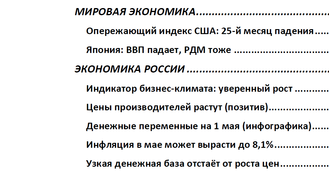 - Опережающий индекс экономики США от Conference Board в апреле на 5,3% ниже, чем год назад. Это 25-й месяц падения. В 2009 и 2020 годах индекс «предсказывал» рецессию. На этот раз ожидаемой рецессии всё нет и нет.