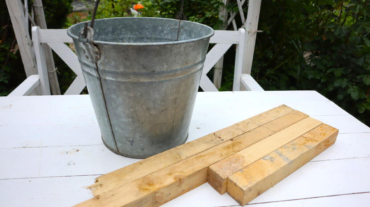 Взяла цинковое ведро, деревянные бруски и сделала из них стильный декор для сада. Теперь подруги просят показать, как это делать