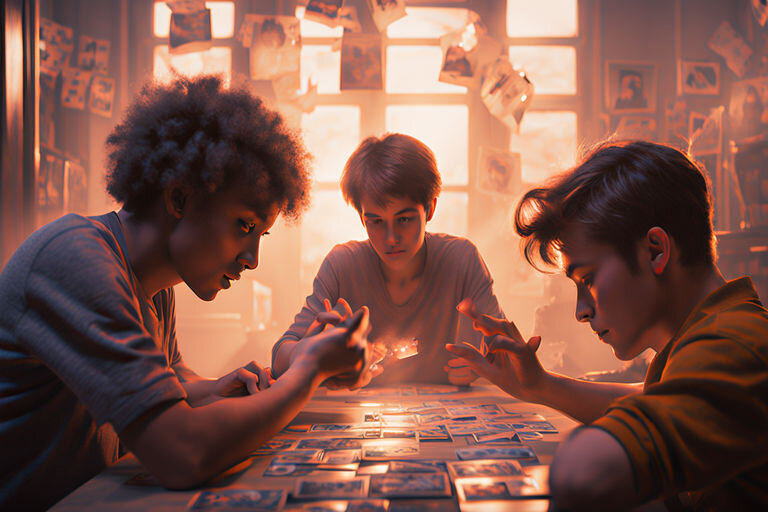 - Итак нас одиннадцать человек, и карт тоже одиннадцать, - сказал мужчина. - На картах изображены различные персонажи: сказочные существа, герои, животные. Четыре карты черного цвета, они относятся к темной стороне жизни: ночь, пороки. Четыре красных карты олицетворяют свет и добродетель, две карты обозначают охотников, а еще одна, одиннадцатая, которую я пока держу в руке, — это сумеречная карта, самая главная, я называю ее оборотнем.