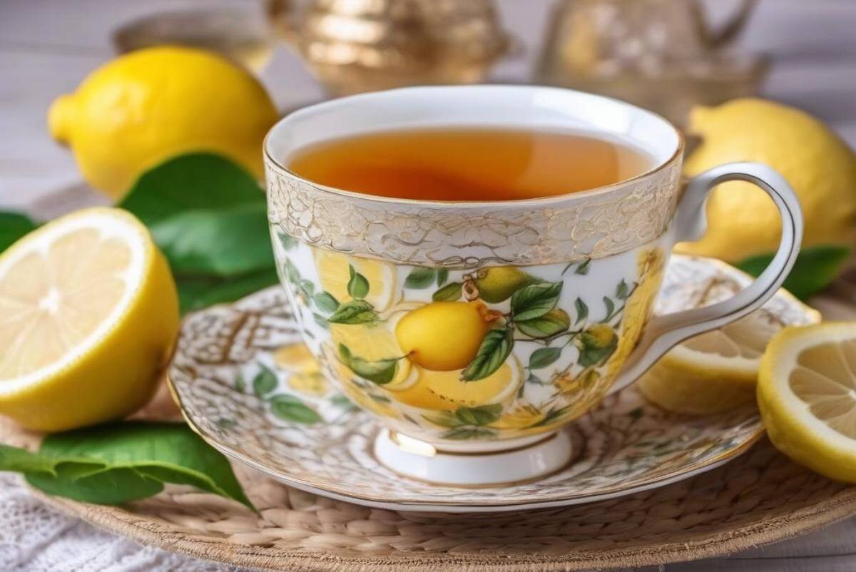 3. Разлейте ароматный чай по фарфоровым чашкам и украсьте ломтиками лимона.