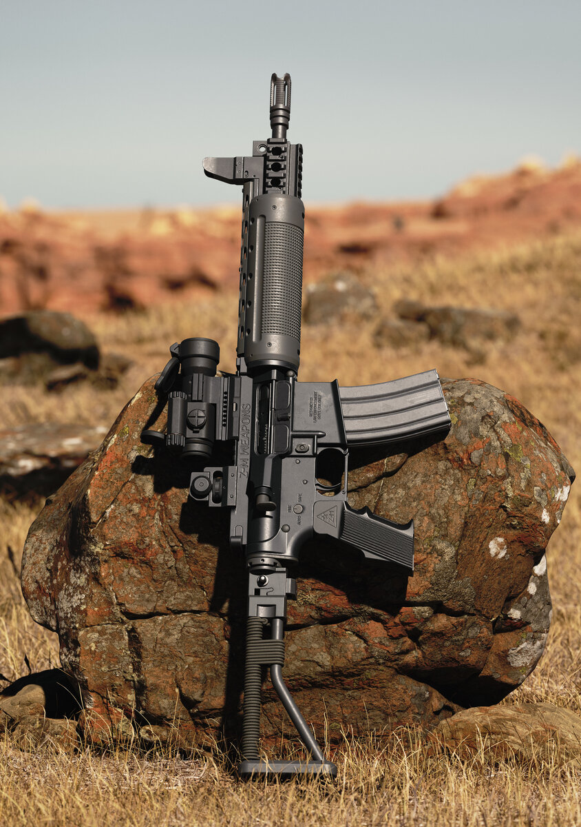 Давайте разберём особенности этой винтовки. Вы уже, должно быть, догадались, что это оружие основывается на платформе AR. Если быть точным, то основой служили AR-15 и M16. При этом, в LR-300 нет неудаляемого приклада. Но это же должно быть перезаряжаемое оружие. В таком случае, как работает механизм подачи патрона? На самом деле всё просто. Если приглядеться, то у этой винтовки какое-то непропорционально большое цевьё, не находите? Алан Зитта, чтобы добиться возможности складывать приклад у LR-300, придумал схему, которая компактно помещает пружину возвратного механизма и буфер отдачи в цевьё. Такой способ не только позволяет избавиться от приклада при необходимости, при работе этот механизм также компенсирует подброс ствола. Другими словами, винтовка показывает себя стабильнее, чем M16, послужившая основой для нового оружия.