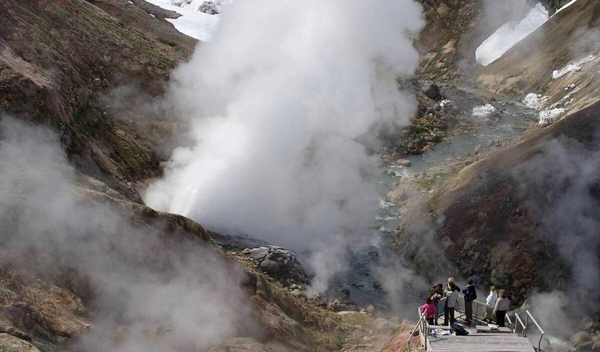 - Сейчас Малый гейзер пытается возродиться. Мы отобрали пробы воды, чтобы разобраться, какой газ его подпитывает. Выяснилось, что это углекислый газ, то есть по газовому составу Малый вновь стал гейзером и это даёт очень хороший прогноз для его дальнейшей жизни. Ему осталось прочистить канал от камней. Сколько времени это займёт, сказать сложно», — рассказал журналистам гидрогеолог, старший научный сотрудник резервата Алексей Кирюхин