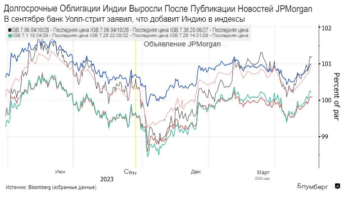 Фирма добавила индийские суверенные облигации, продала китайские ноты. Более высокая доходность, стабильная валюта делают индийские облигации привлекательными: JPM Компания JPMorgan Asset Management увеличила свои инвестиции в индийские суверенные облигации, номинированные в местной валюте, считая их лучшей ставкой среди аналогичных бумаг в Азии. Компания добавила облигации в апреле, когда доходность эталонных 10-летних облигаций поднялась выше 7,15%, сказал в интервью Хулио Каллегари, главный инвестиционный директор по инструментам с фиксированной доходностью в Азии. Он добавил, что в этом месяце компания зафиксировала часть прибыли от китайских государственных облигаций. "Индия - это то, что нам больше всего нравится в облигациях в местной валюте", - сказал Каллегари, ссылаясь на высокую доходность и отсутствие волатильности. По его словам, "в Азии не так много мест с точки зрения кэрри-трейда, где предлагаются выгодные выраженные в местной валюте суверенные облигации". JPMorgan Asse