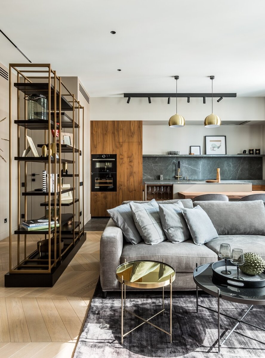 Квартира в ЖК «Сердце Столицы» — проект от WOWDOM занимающий площадь 70м2. Заказчики проекта хотели получить современный функциональный интерьер с использованием натуральных материалов и универсальный сценарий проживания. Для дизайнеров было важно максимально использовать пространство, чтобы любой член семьи чувствовал себя здесь комфортно. На небольшой площади этой квартиры они разместили прихожую с большим количеством места для хранения вещей, плавно переходящую в кухню-гостиную, комнату, два санузла, спальню, гардеробную и отдельную постирочную. В спальне вместо предложенного застройщиком шкафа-купе удалось спланировать полноценную гардеробную.