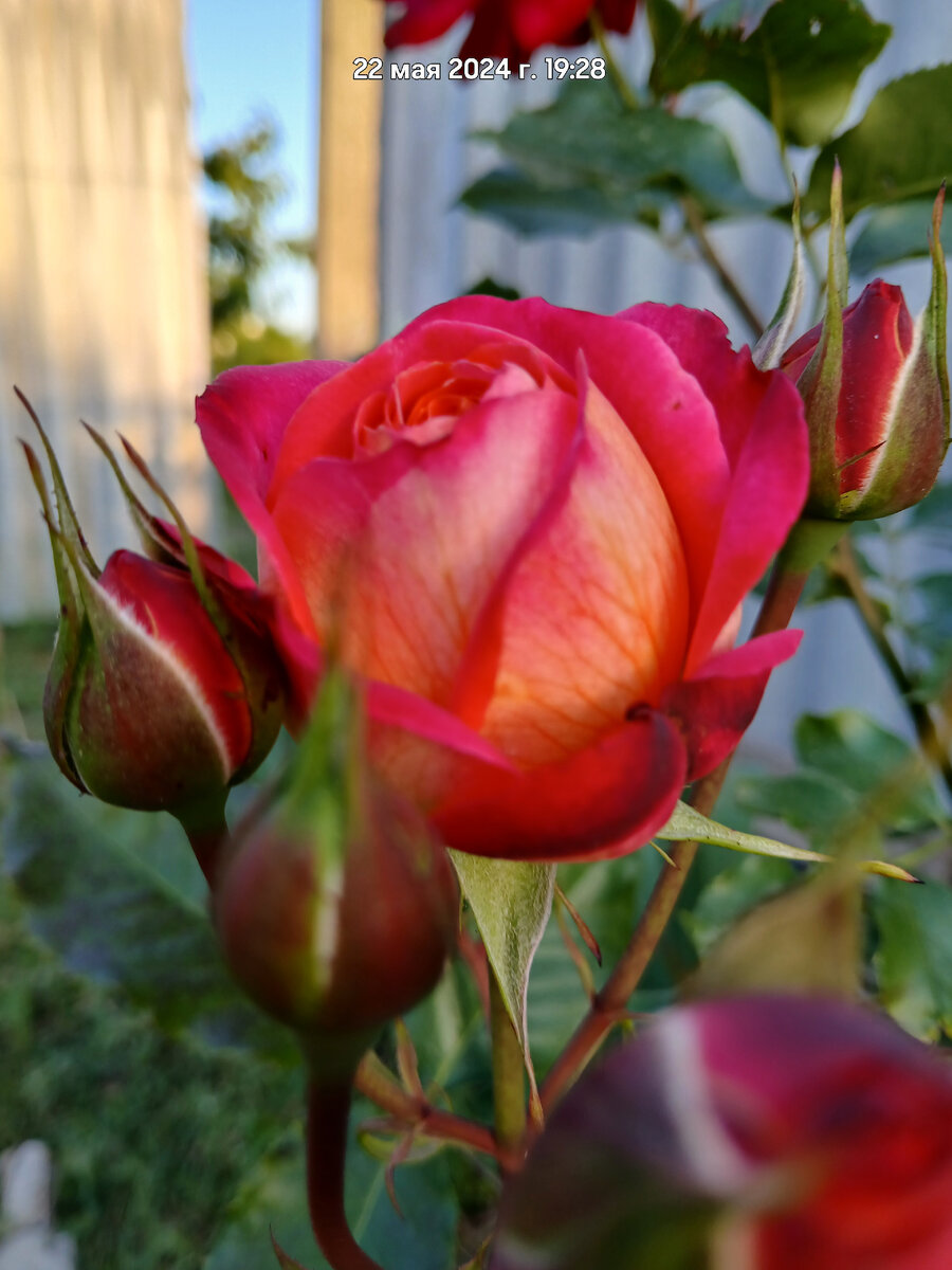А с другой стороны стоит роза и тоже большая и без названия. И вот когда дули ветра они очень сильно раскачивались и били розу стоящую посередине. И снесли с этой третьей чайно-гибридной розы почти все бутоны.