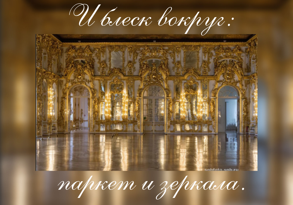 Мы с подругой решили отправиться в Царское Село, посмотреть Екатерининский дворец. Мы переходили из зала в зал, пока не очутились в Большом тронном зале. Невероятное впечатление! Свет, блеск, простор... Я словно вернулась во времена Великой Екатерины!