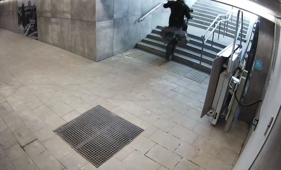 В администрации Курской области сообщили о повреждении керамической напольной плитки на ступеньках подземного перехода на остановке транспорта «Река Сейм» на улице Энгельса (видео в телеграм-канале ДДД). Камеры видеонаблюдения зафиксировали, что 25 мая мужчина на мотоцикле зачем-то забрался в подземный переход. Он пытался выехать наверх по ступенькам на мотоцикле, это привело к повреждению плиточного покрытия в реконструированном переходе. Запись передают полиции для установления личности вандала. В тему: Сергей Яшин, фото администрации Курской области Постоянный адрес новости на сайте «Друг для друга» ~ https://dddkursk.ru/lenta/2024/05/27/108894/. Новости Курска за ~ 27 мая ~ май 2024 года.