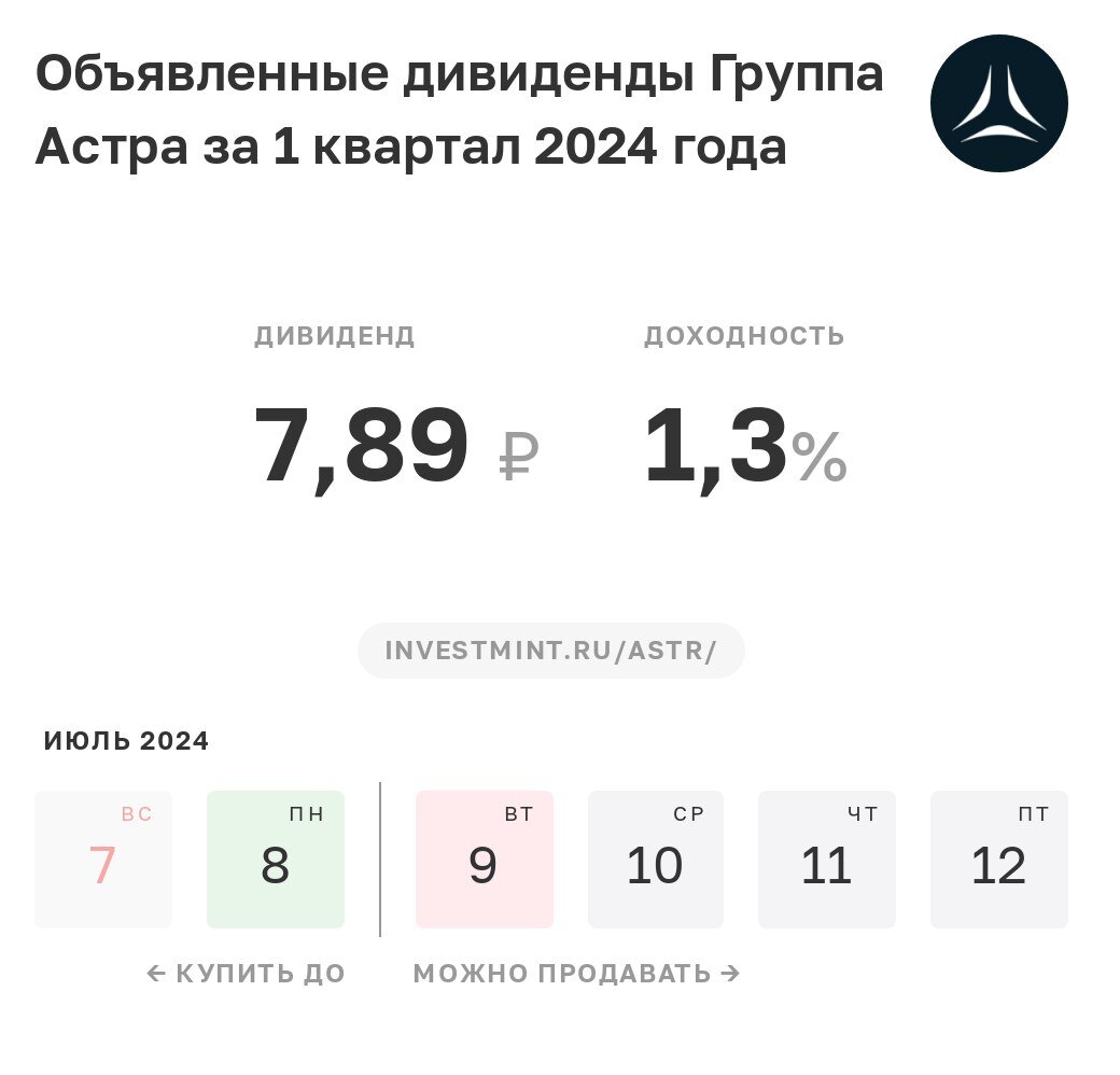 Конечно маловато. Даже и 10 рублей не наберется. И доходность 1,3 процента уж очень слабая. Но по моей средней цене покупки почти 1,5 выходит. Плюс данная акция хорошо подрасла и дает больше 1000 рублей плюсом. Эту компанию я думал продать на более высокой цене для фиксации прибыли и убрать на время из портфеля. В связи с выплатой дивидендов за 1 квартал 2024 года придется ее оставить. Надеюсь в дальнейшем выплаты будут только расти.