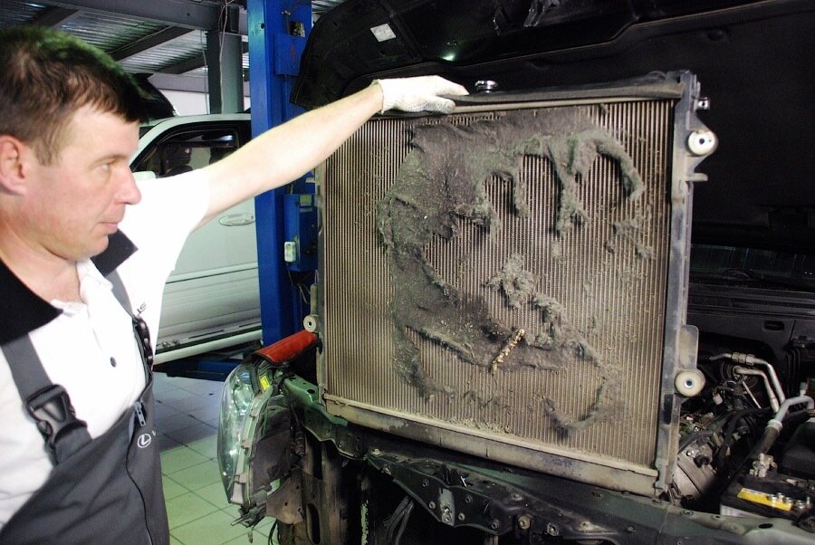 Промывка радиатора охлаждения делится на несколько видов, однако все они важны и все они нужны! В первую очередь, конечно же потому, что забитый радиатор хуже справляется со своей основной задачей охлаждения двигателя, что может приводить к перегреву и снижать ресурс двигателя. Конечно, разница не чувствуется для вас, как для водителя железного коня, однако его мотор с каждым днем такой езды начинает ощущать себя хуже и хуже. В основном от того, что поток набегающего воздуха, который охлаждает хладагент не может пробиться сквозь слой пыли и грязи, что приводит к нарушению теплообмена с окружающей средой. Как не стоит промывать радиатор? Открытый вопрос, который мы сейчас обсудим без лишних фактов и теории. Какие есть варианты промывки радиатора охлаждения? В первую очередь стоит отметить, что промыть радиатор без снятия можно только на бюджетных машинах без кондиционера. Так как радиатор только один, то единственное, что нужно сделать в некоторых моделях - снять бампер. Порядок дейс