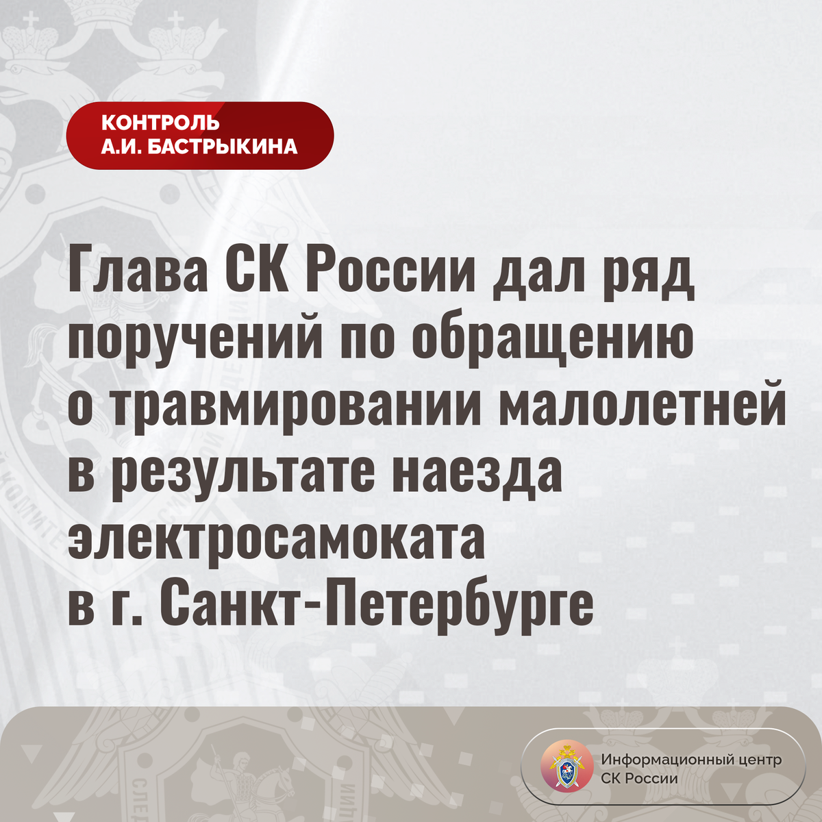 Глава СК России дал ряд поручений по обращению о травмировании малолетней в результате наезда электросамоката в г. Санкт-Петербурге
